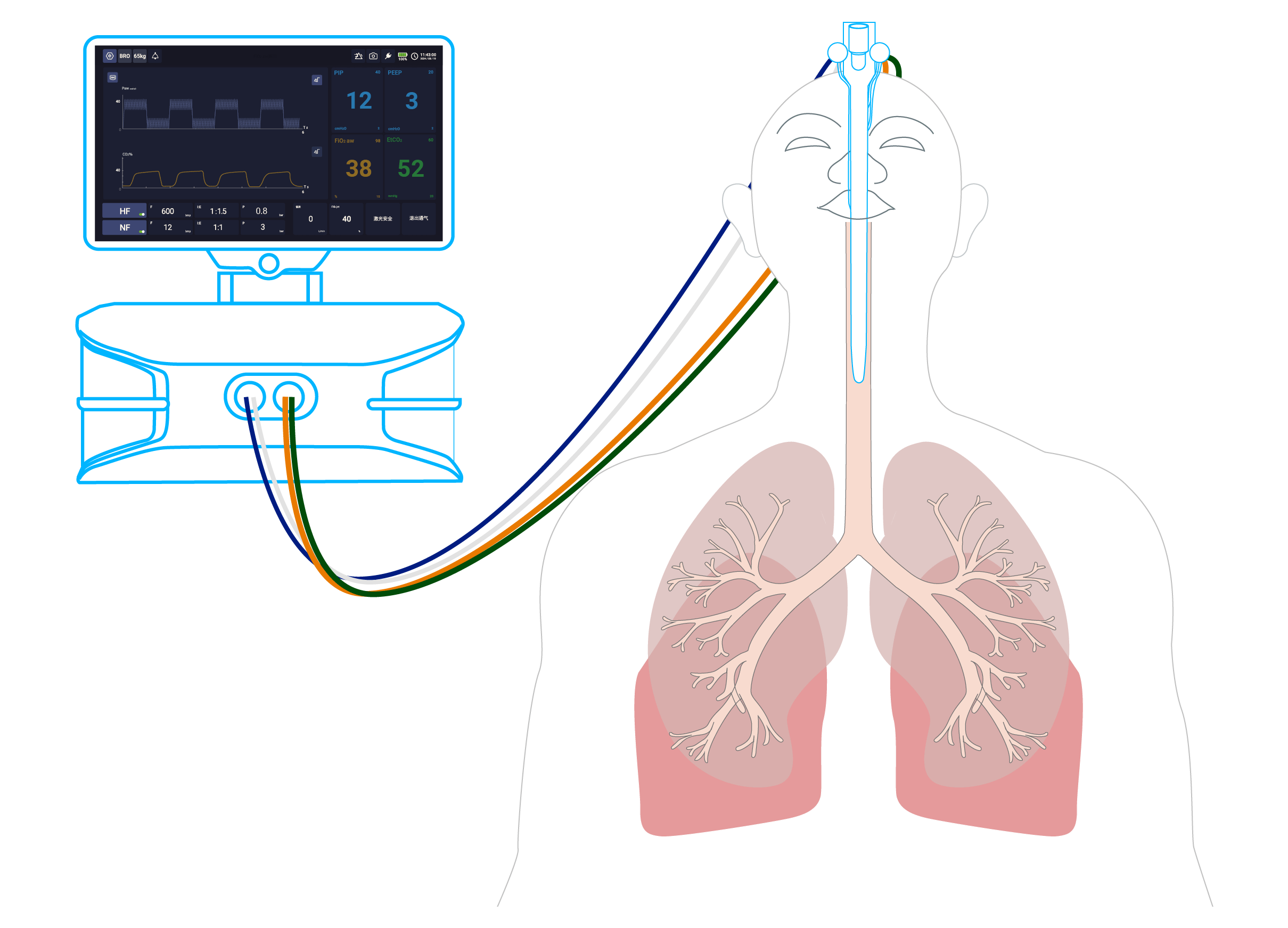 对于外科气道类手术及对胸腹运动要求极度“静止”的手术患者如气道支架、气道重建、房颤射频消融、儿童气道异物取出等手术场景,高频喷射通气(HFJV)凭借其开放式通气+小潮气量的特点,依然是不可替代的金标准。而对于需要迅速复张肺泡、改善严重氧合功能障碍的弥漫性肺病,高频震荡通气(HFOV)以其强大的“开放肺”能力和独立的主动呼气机制,提供了更为稳健的呼吸支持。