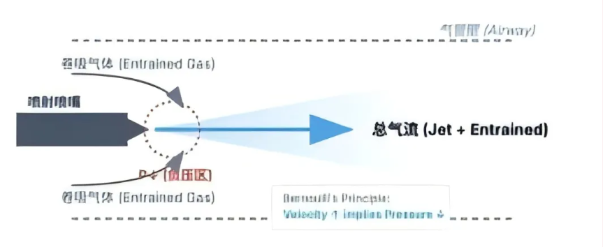 关键物理现象(文丘里效应):高速射流会产生负压,从而将喷嘴周围的开放空气“卷吸”进入肺内,这极大地增加了实际进入肺部的通气量。