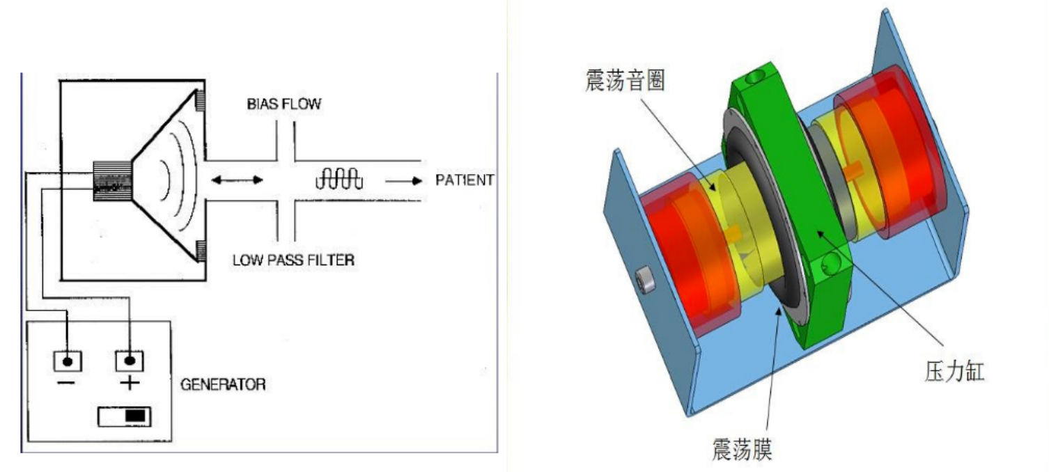高频振荡通气(High-Frequency Oscillatory Ventilation, HFOV)被视为最彻底的高频通气形式。其核心技术原理分为电磁音圈 / 隔膜驱动式、机械活塞泵式、高频气流阻断式几种方式,其中电磁音圈 / 隔膜驱动式依然是目前最经典的通气方式。